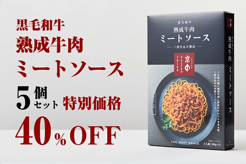 質と量の両立、京中ならではの独自視点で目指してきた商品群の中でも、京都・伏見の六地蔵本店にて長らくご愛顧いただいてきた「熟成牛肉ミートソース」を、5個10人前入り【40%OFF】!!!にてご提供させていただきます。