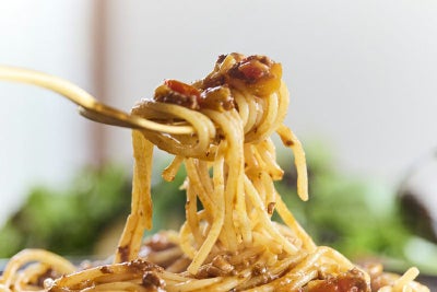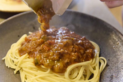 京中特製デミグラスソースにたっぷりの京中式熟成牛肉と野菜を合わせ、熟成肉と野菜のうま味あふれる本格ミートソースに仕上げました。