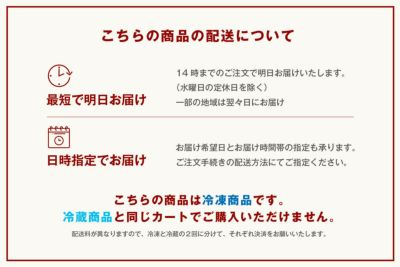 生鮮食品のため原則としてお客様のご都合による返品・交換は致しかねますのでご容赦ください。商品の品質には万全の注意を払っておりますが、出荷間違いや配達中の事故等で商品に破損・損傷等が生じた場合は、商品到着の翌日までにご連絡ください。商品到着翌日までにご連絡がない場合、商品の返品・交換はお受けしておりませんので予めご了承ください。商品発送の前日まではキャンセルを承ります。
