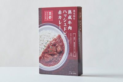 京中式熟成⽜⾁の濃い⾁味、⾁⾹ 、⾷感、⾵味のバランスを最⼤限に活かし、ごろごろと厚切りにした熟成牛肉のコクに、トマトの酸味とスパイスが調和したハッシュドビーフカレーです。カルダモンやコリアンダー、クミンといった数種類のスパイスを合わせ、熟成牛肉、トマト、スパイス、これらをほんの少しのカツオの風味でまとめました。熟成牛肉の柔らかな甘みとトマトによる軽やかな酸味、刺激が苦手な方やお子様にも食べやすい味に仕上げています。