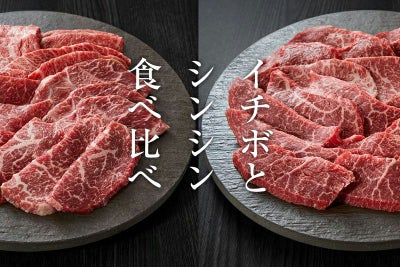 モモの霜降部位イチボと、モモの赤身部位シンシンの食べ比べ。