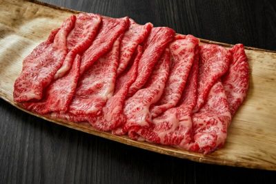 霜降りをお楽しみいただきたい商品ですが、お相手様の好みに合わせて、赤身を混ぜる事も可能です。赤身は、味と香りの濃いランプ・ラムシンをスライスいたします。