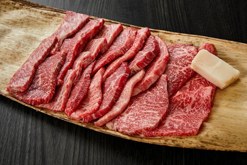 やわらかくてあっさりとした赤身や噛み込んでおいしく、味の濃い赤身、とろけるような霜降りや香り高く噛みしめておいしさが溢れ出す霜降り、様々な部位をお客さまの好みに合わせて混ぜ合わせます。