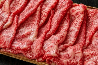 霜降りをお楽しみいただきたい商品ですが、お相手様の好みに合わせて、赤身を混ぜる事も可能です。赤身は、味と香りの濃いランプ・ラムシンをスライスいたします。