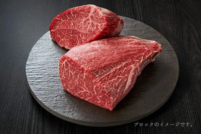 肉味穏やかで上質な脂の甘みが広がる霜降り部位を塊で(100gあたり4,500円税別)