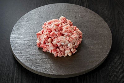 京中式熟成牛肉の上質な脂を挽き肉にします。