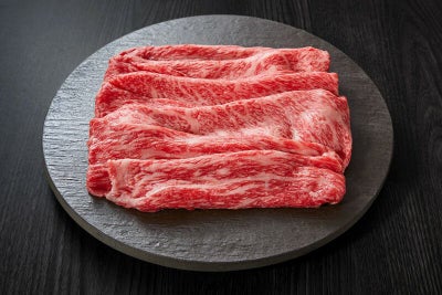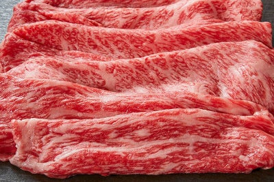 赤身と霜降りの部位をしゃぶしゃぶ用にスライス(100gあたり2,300円税別)