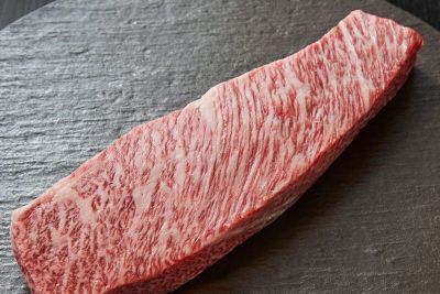 ミスジは、肩甲骨が張り付いている筋肉で中にスジが一本通っていて、筋繊維に垂直にカットすると一本のスジが身の中に入っているように見えるのでミスジと呼ばれています。京中式熟成によって肩甲骨の香りが肉に移り独特の風味を醸し出します。キメ細かくきれいな霜降りが入った部位ですが、脂の味わいは、いたってかろやかです。また、肉味も穏やかなので、脂の味と肉の味をバランス良く味わえる部位です。シャクっとした独特の食感が特長的です。