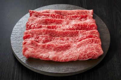 風味豊かな霜降とあっさりとした赤身を程よくブレンドしてスライス(100gあたり2,300円税別)