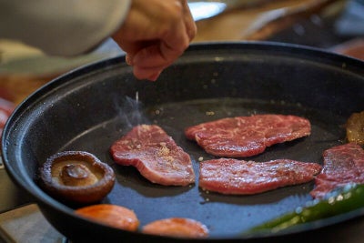 京中式熟成肉の輪郭をはっきりさせる塩
