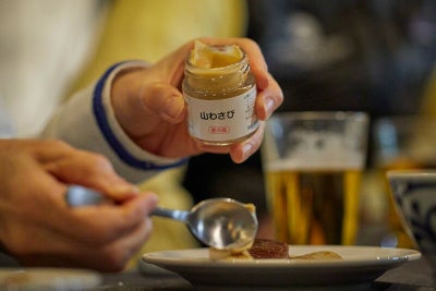 山わさび(ホースラディッシュ)を乾燥させて粉末にした後に醸造酢で練りました。心地よい辛みとかろやかな香りが京中式熟成肉の味や香りにちょうど良く、ローストビーフや焼肉にはもちろん、しゃぶしゃぶに山わさびと少しの塩で食べると、お肉の新しい味に出会えます。